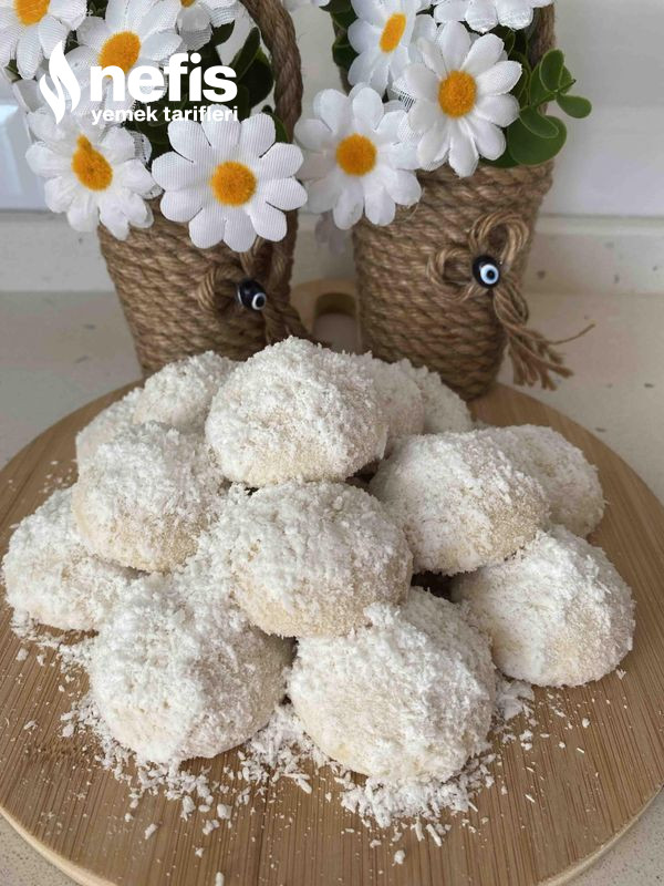 - İlk sıcaklığı çıkan kurabiyeleri dikkatli olacak halde pudra şekeri ve hindistan cevizi karışımına bulayıp servis tabağına alalım, deneyecek olan herkese afiyet olsun. 💫.