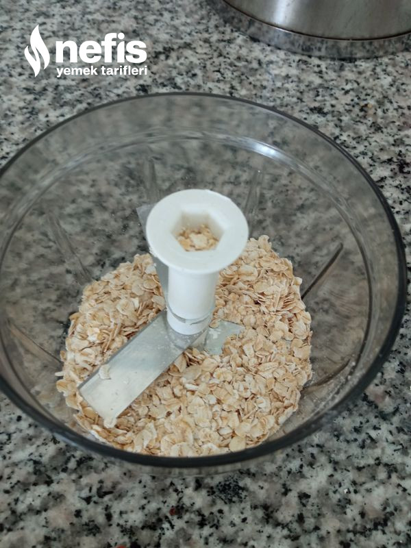 - Yulafımızı el robotuna alıp güzelce öğütüyoruz üzerine ıslattığımız hurmaları ekleyip yine robottan geçiriyoruz.