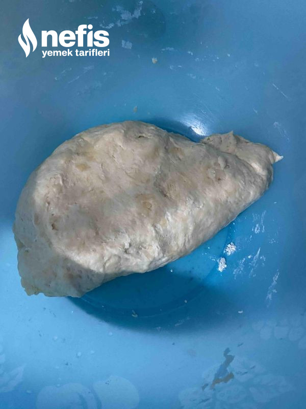 - Öncelikle hamurumuzun gereçlerini geniş bir kaba alıyoruz ve yoğuruyoruz ele yapışmayan yumuşak bir hamur kıvamı oluyor 30 dk üzerini streçliyoruz ve mayalanmasını bekliyoruz.