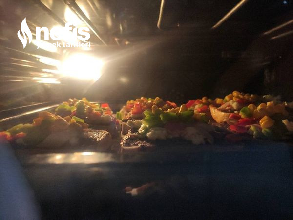 - Peynir, hindi füme, yeşil biber, kapya biber ve mısır ekliyorum.