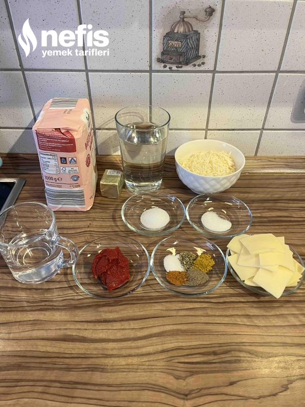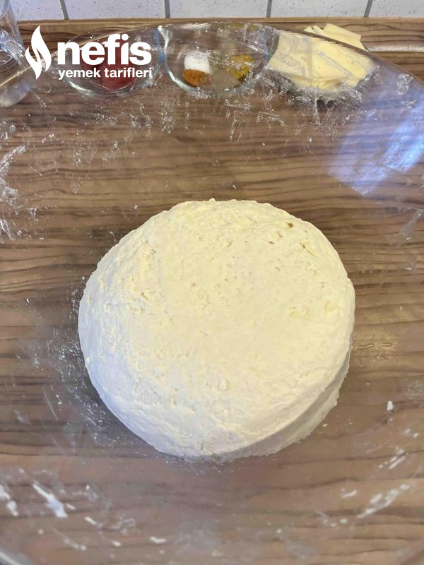 - Daha sonra kaşar rendesi hariç tüm gereçleri ek edip, yavaş yavaş su ekleyerek yoğuralım.