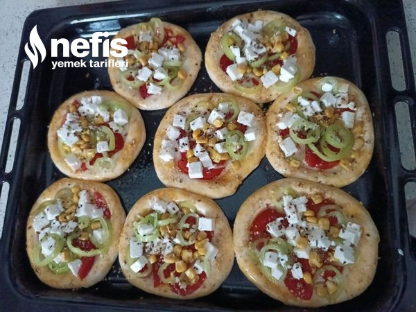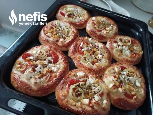 - Pişen pizza poğaçaları fırından çıkardıktan sonra üzerlerine kekik serpiştirilip soğumaya bırakılır. Afiyet olsun.