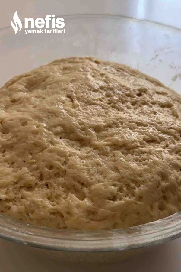 - Un hariç tüm gereçleri karıştırın, en son unu azar azar ekleyin ve ele yapışmayan yumuşak bir hamur elde ettikten sonra üzerini bir poşet ile örtüp 1 saat mayalandırmaya bırakın.