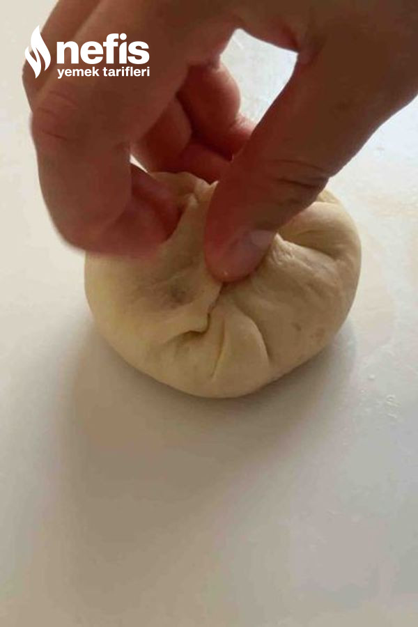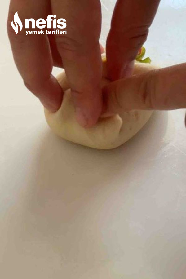 - Daha sonra elimizle hafif bastırarak açıp hazırladığımız harçtan koyup hamurun ağzını kapatıyoruz.