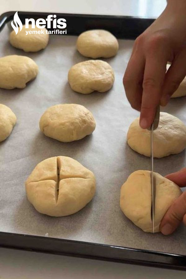 - Yağlı kağıt serili fırın tepsisine dizip üzerine bıçakla çarpı formunda çizikler atıp en son üzerini bez ile örtüp tepsi mayası yapalım .
