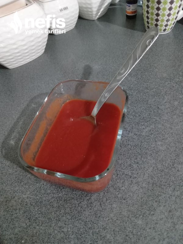 - Bu sırada sos için domates salçasını suyla ezelim. İçine az sıvı yağ ve tuz ekleyelim.
