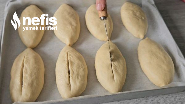 7. Tepsi mayasının akabinde poğaçaların üzerini bıçakla keserek açın.