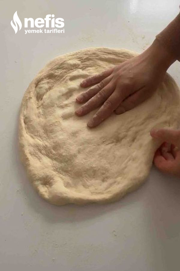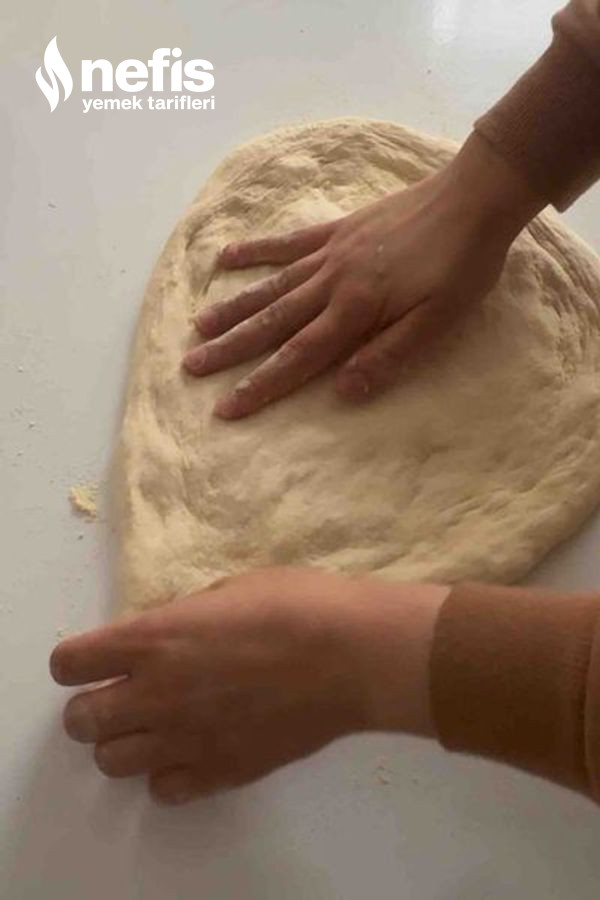 - Mayalanan hamurumuzu evvel bir havasını alıp bir hoş yoğuruyoruz daha sonra iki eşit beze bölüyoruz ve iki bezenin de üzerini örtüp 5 dakika dinlendiriyoruz .