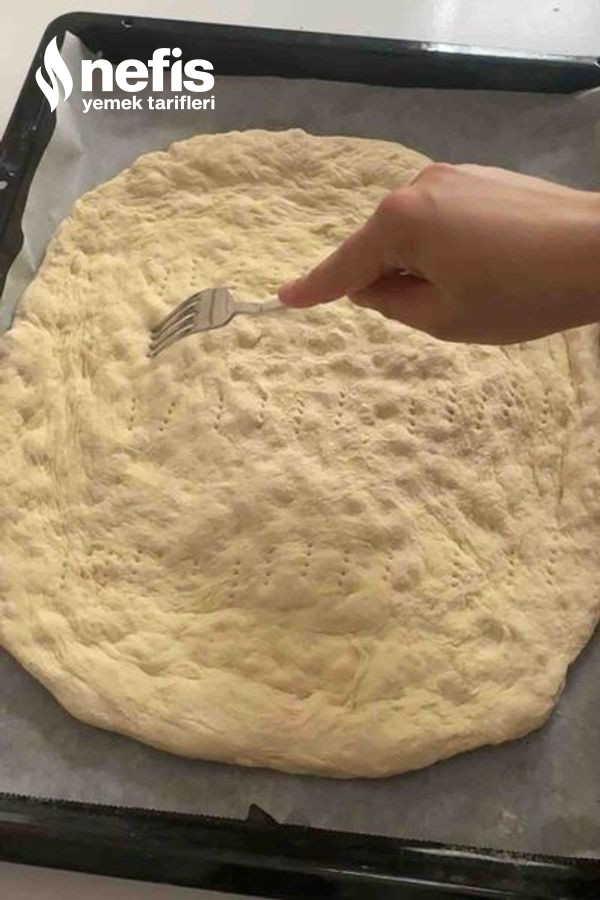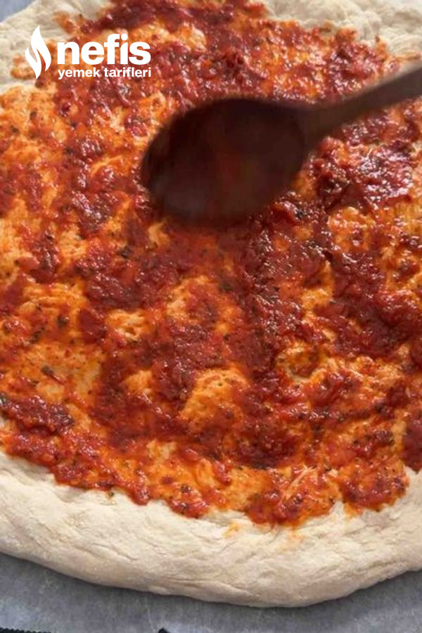 - Tepsiye yerleştirelim çatalla çizikler atalım, ortasına domates sosun üzerine yayalım.