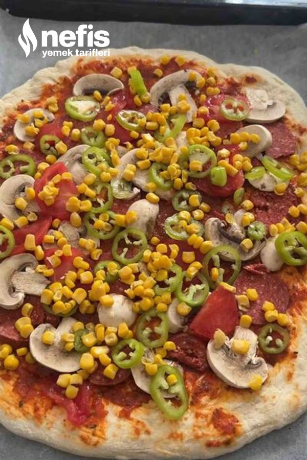 - Daha sonra sırasıyla öbür materyalleri yerleştirelim ve evvelden ısıtılımış 220°’de fırında hamurun kenarları kızarana kadar pişiriyoruz ,çıkarmaya yakın yani 2 dakika evvelden pizzayı çıkaralım.
