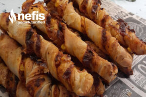 - Diğer hamurumuzuda açıp onun üstüne kapatıp evvel ortasından daha sonra 1,5 cm eninde kesip bükelim üzerine tereyağı sürüp 180 derecelik ısınmış fırında üstü kızarana dek pişirelim.