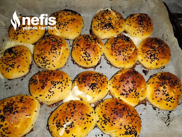 6. Daha sonra form verdiğiniz hamurları yağlı kağıt serilmiş fırın tepsisine dizin ve 10 dk tepside mayalanmasını bekleyelim pofuduk poğaça elde edeceksiniz.