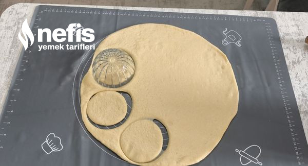 - Bir tane hamurumuzu orta kalınlıkta açalım ve bir kase ile yuvarlak olacak halde keselim.