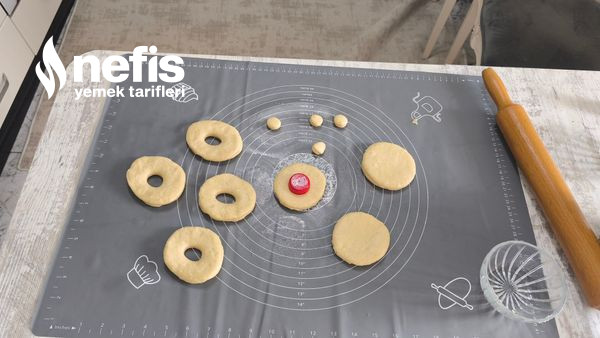 - Kestiğimiz hamurun ortasını meşrubat içecekleri kapağı ile keselim.