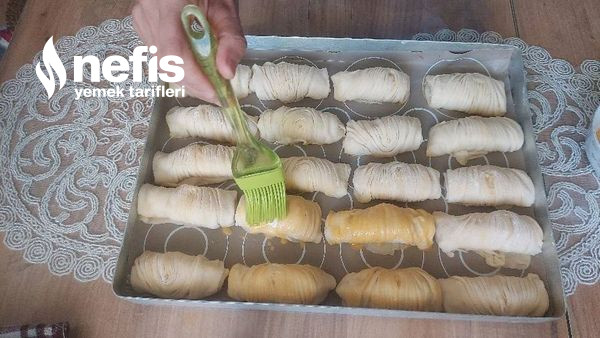 - 20 dakika tepsi mayası yapalım üzerine bir tane yumurta sarısı 3 yemek kaşığı sütü karıştırarak fırça ile sürüp 190 derece evvelce ısıtılmış fırında her üzere kızarana kadar pişirip servis edelim.