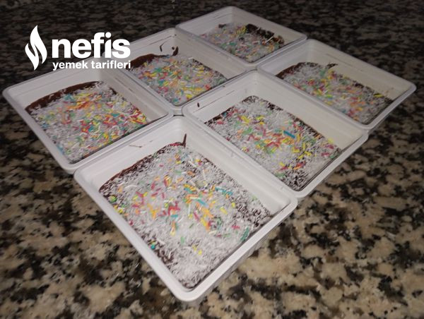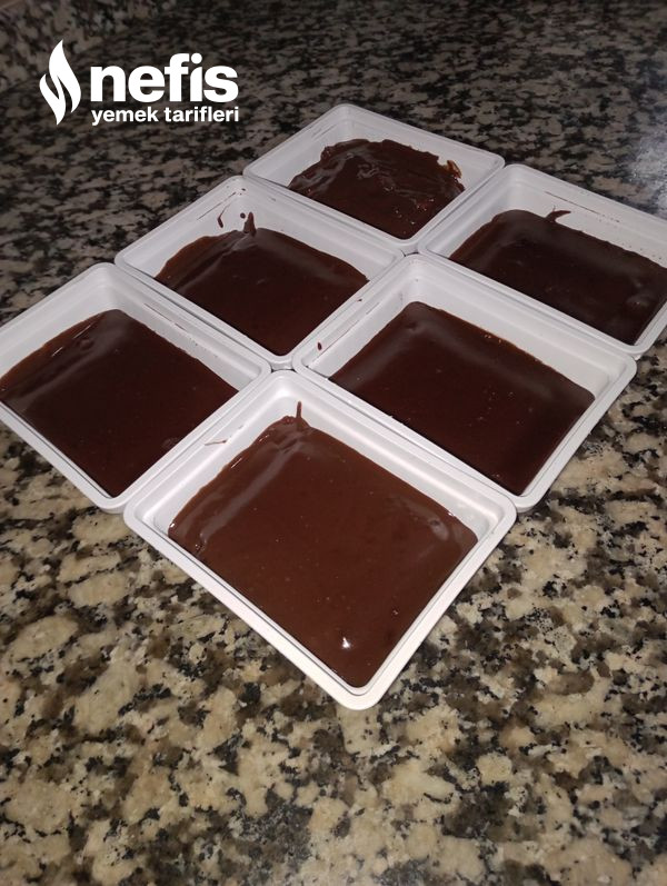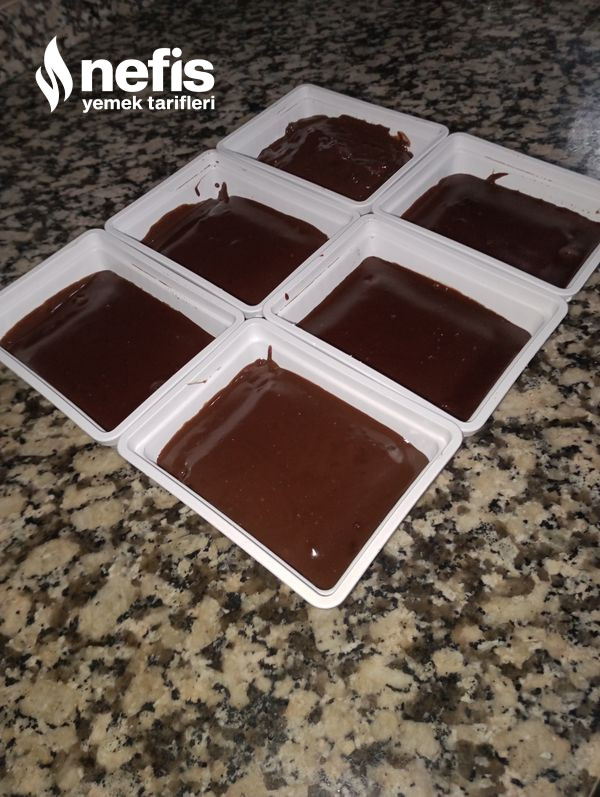 2. Sonra porsiyon kaplarının tabanına pudingden koyun sonra pötibör bisküvi den koyun toplam 3 kat bisküvi olacak en üst kata da puding koyun ve 25-30 dakika oda sıcaklığına gelsin pastamız sonra süslemeyi yapın.