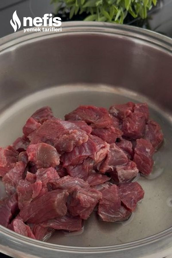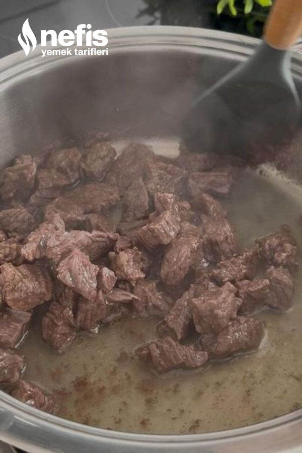 - İlk evvel kuşbaşı doğranmış etleri düdüklüde pişirelim.