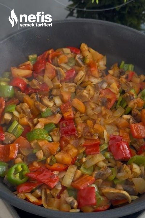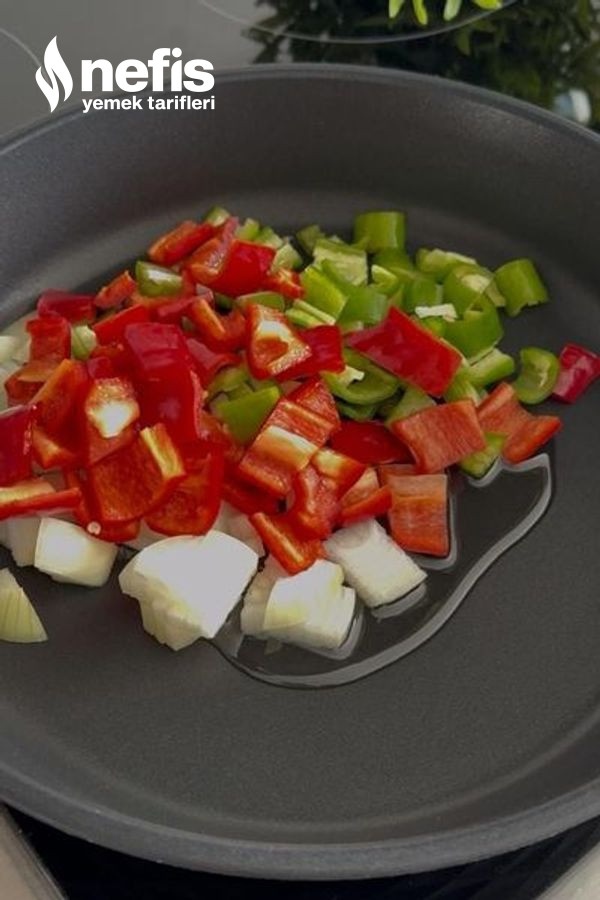 - Üzerine küp doğranmış soğanları ve biberleri ekleyip kavurmaya başlıyalım.