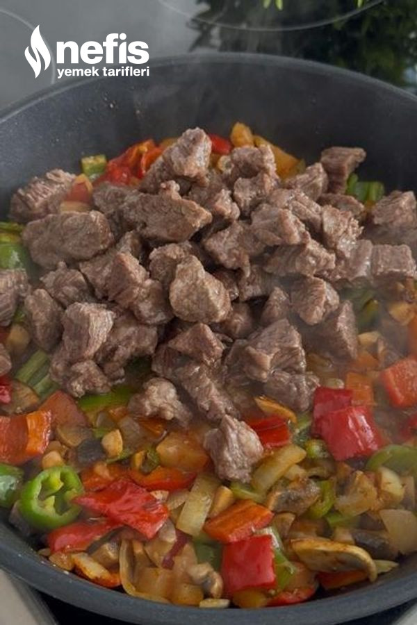- Sonra haşladığımız etleri ekleyip güzelce karıştıralım.