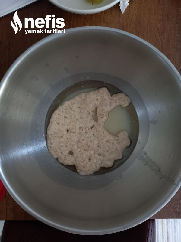 8. Mayalanmış hamurun üstüne ele yapışmaması için biraz sıvı yağ dökelim.