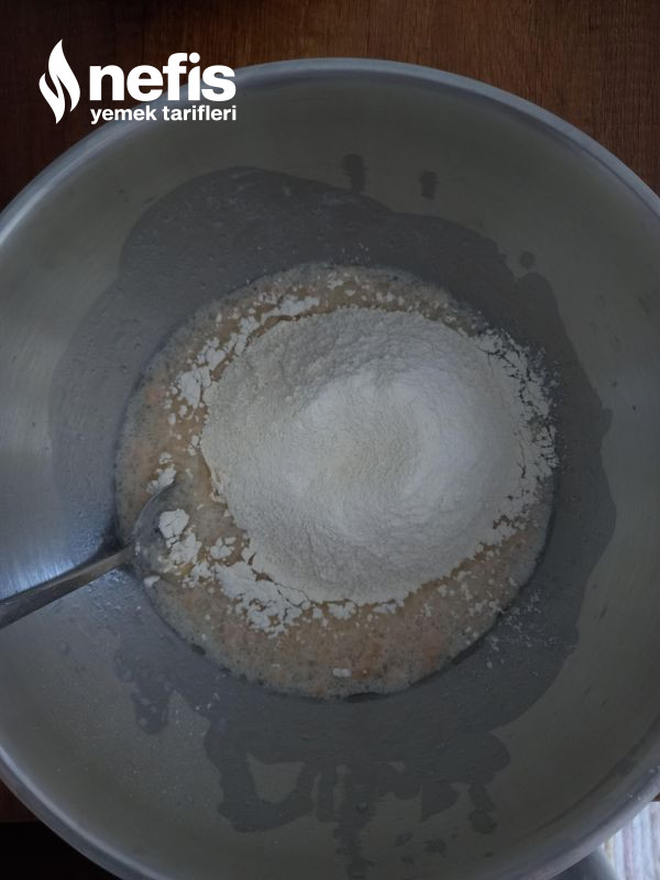 3. Ön mayalanmadan sonra tuzu ve yumurta akını ekleyip karıştıralım.