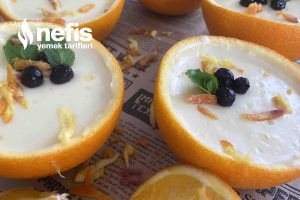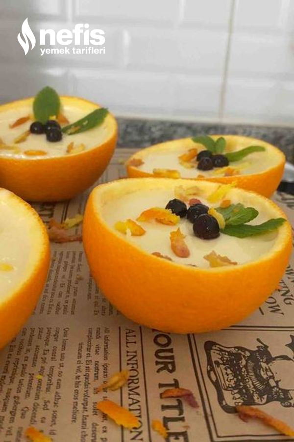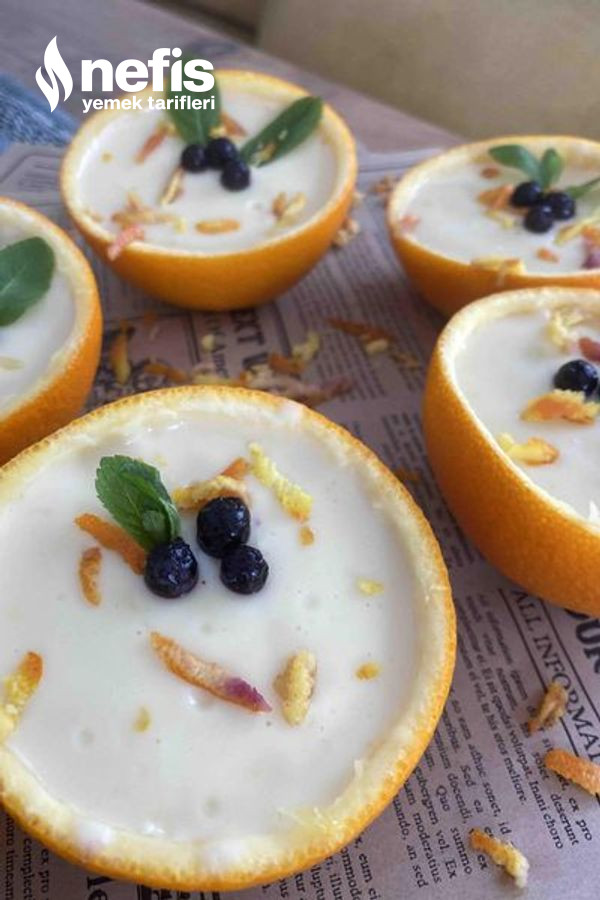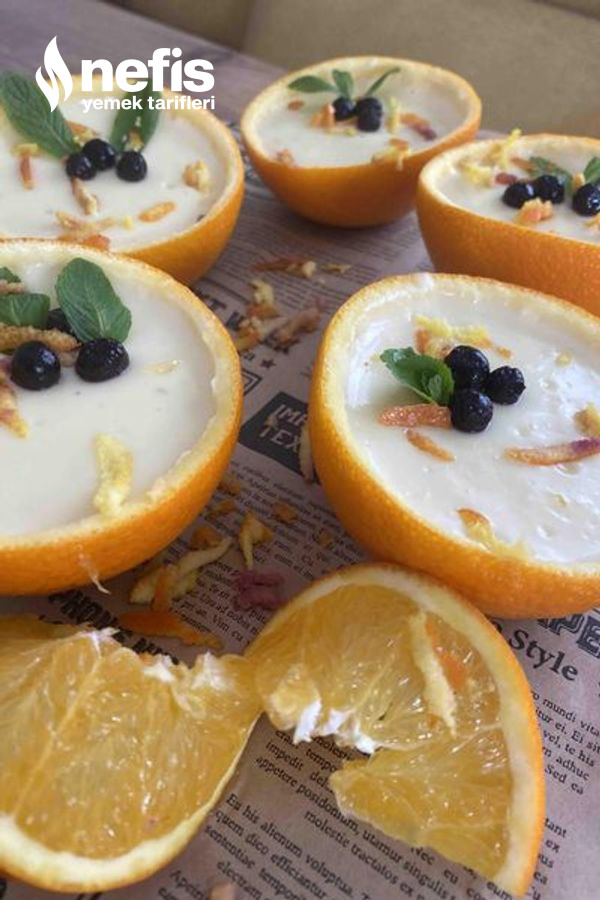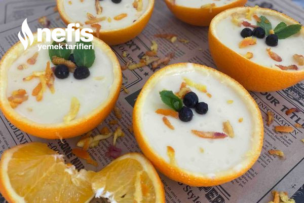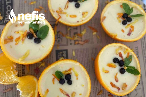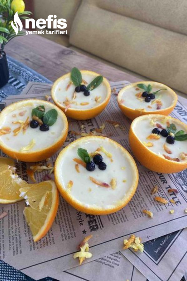 - Hazırladığımız tatlıyı portakal kabuklarının içine paylaştıralım ve buzdolabında dinlenmeye bırakalım.