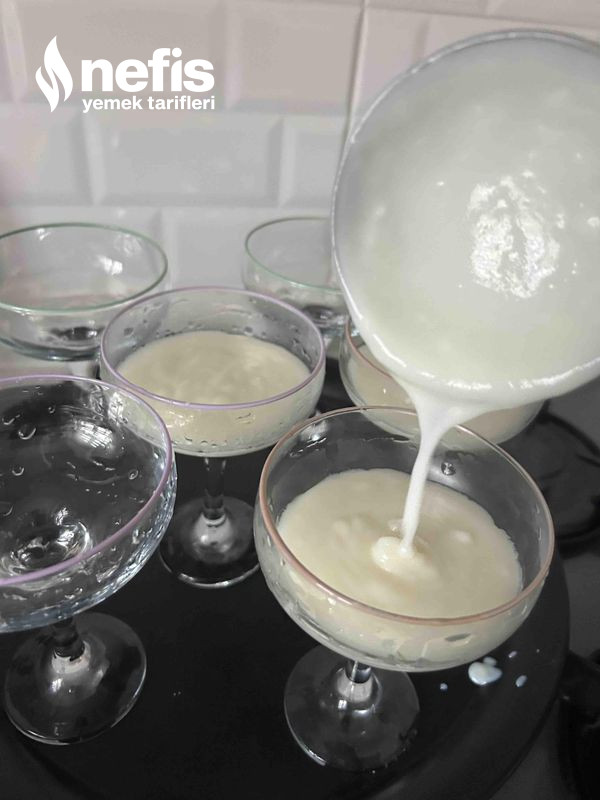 6. Kıvam alıp saydamlaştıktan sonra muhallebilerimizin üzerine paylaştıralım oda ısısında soğuduktan sonra buzdolabına kaldıralım birkaç saat dinlendirelim.