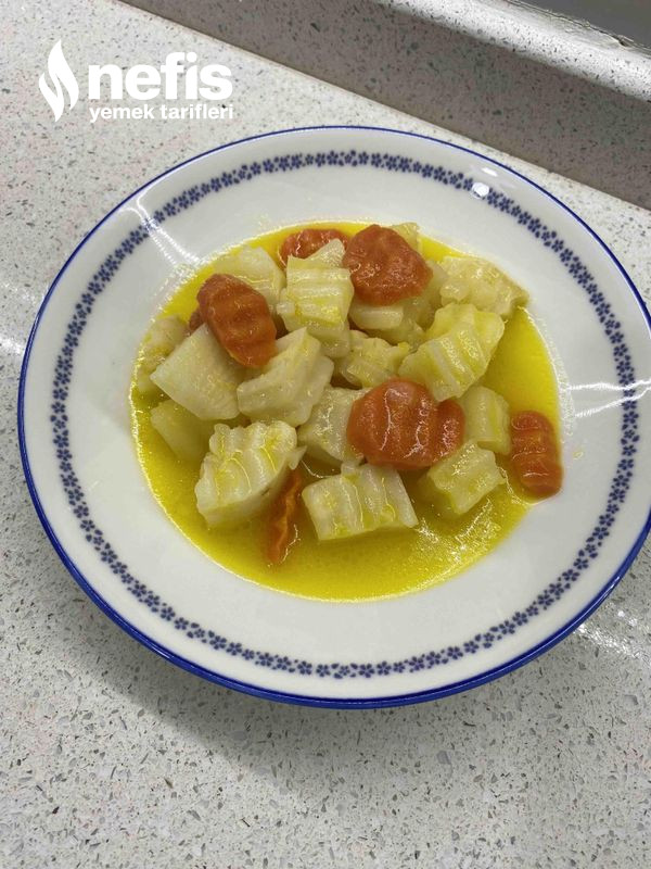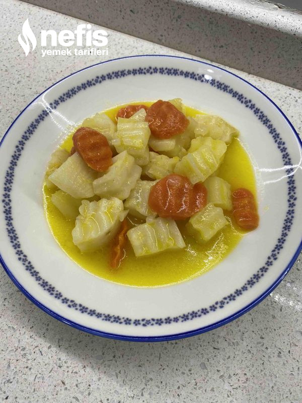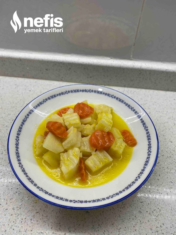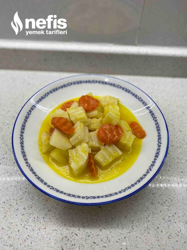 - Kerevizi de ekleyip, üstüne tuz, 1 su bardağı su, 1 su bardağı portakal suyu eklenip pişmeye bırakılır. Kaynamaya başladıktan sonra altı kısılıp pişirilir.