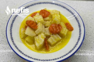 - Soğan, zeytinyağ tencerede alınır. Havuç eklenir, patates eklenir.