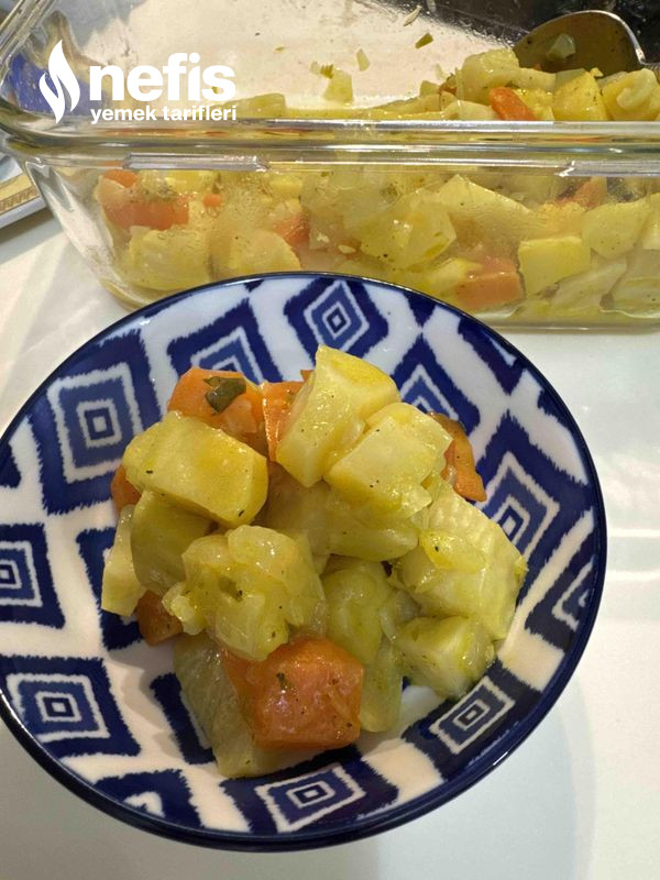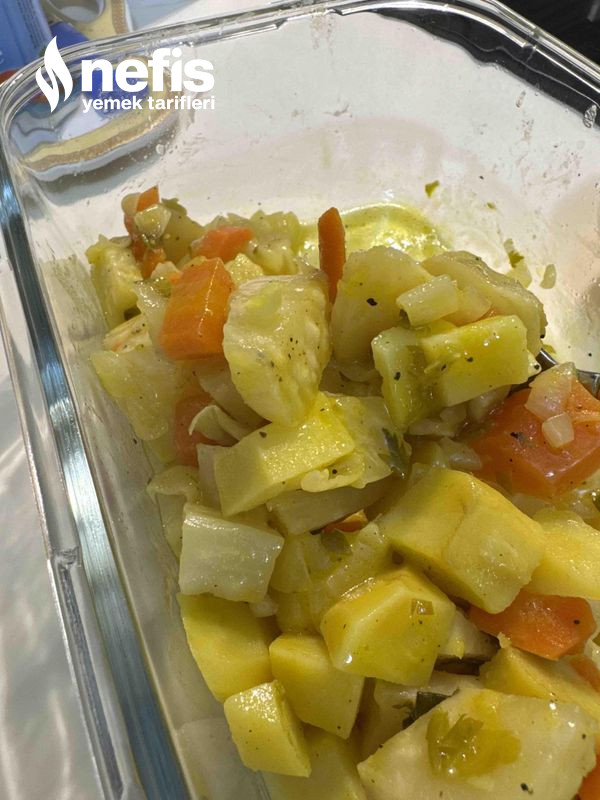 5. Tüm sebzeler pişip suyunu çekene kadar (çok az suyunu bırakabilirsiniz) piştikten sonra üzerine tekrar zeytinyağı gezdirip soğuk olarak servis yapılır yapanlara afiyet olsun.