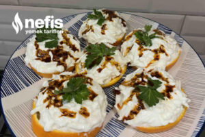 4. Portakalları dilimleyerek üzerine yoğurtlu kerevizi koyalım.