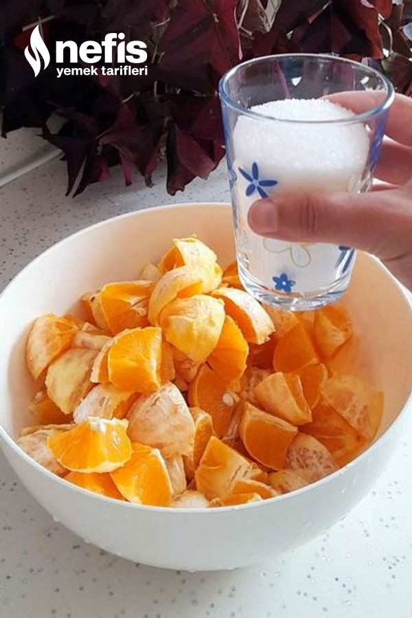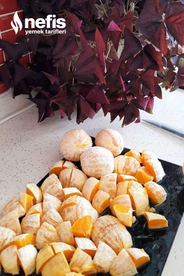 1. Portakalların kabuklarını soyun ve dilimleyin üzerine 1 su bardağı toz şekeri ve naneleri koyarak blenderdan geçirin.
