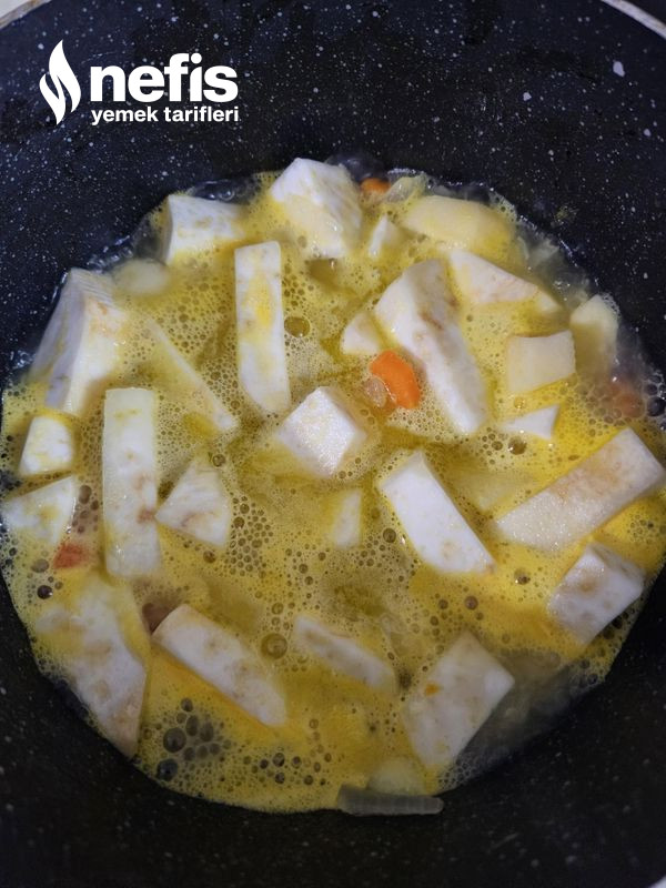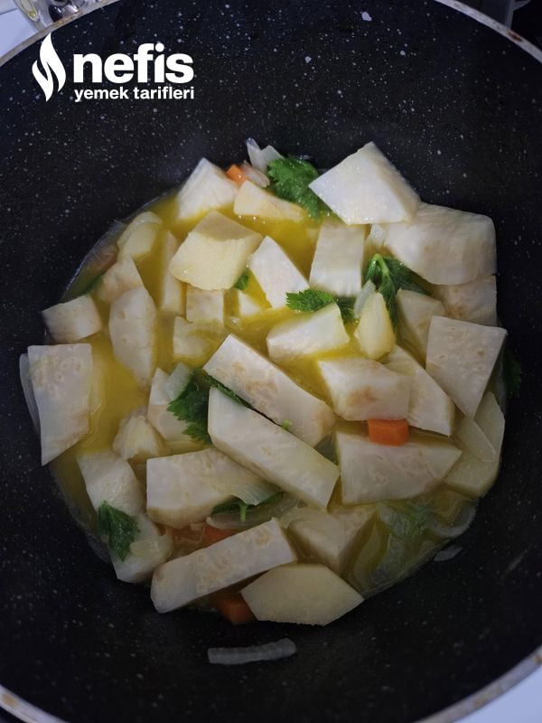 - Pişmesine yakın doğradığım kereviz yapraklarını da ekledim.