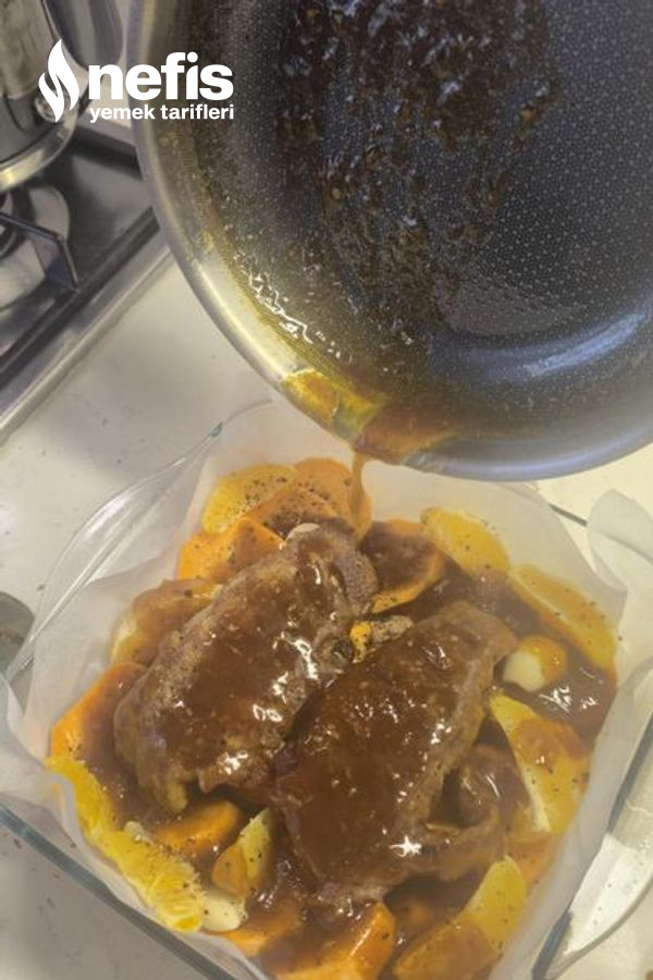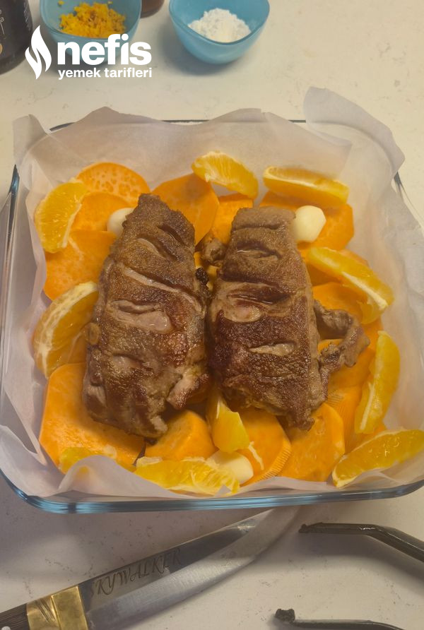 - Fırın kabında yer alan tatlı patates, portakal dilimleri ve kızarmış ördek etinizin üzerinde sosunuzu gezdirin.