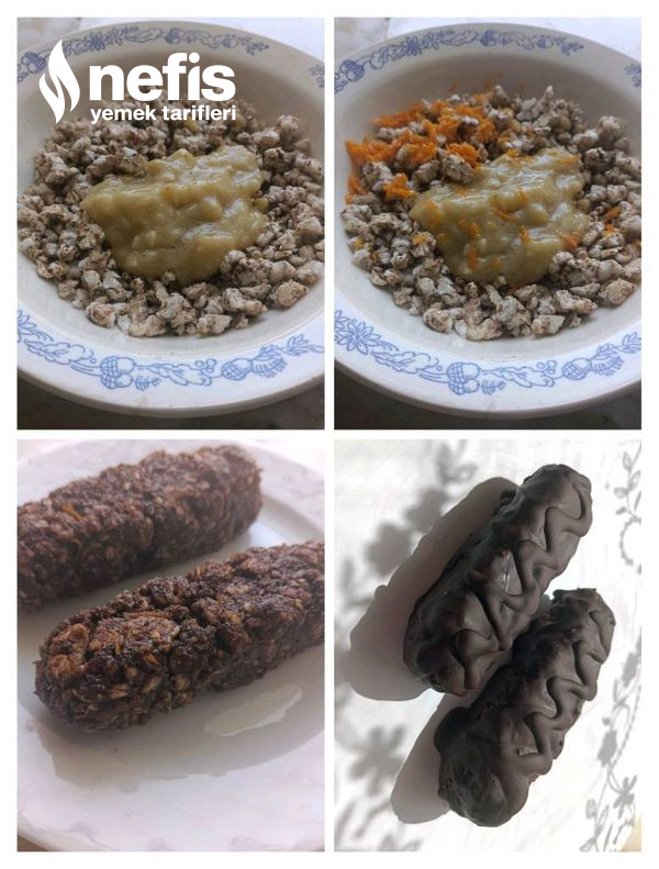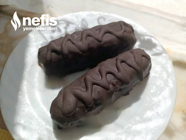 - Üzerini hindistan cevizi yağıyla birlikte benmari eritilmiş bitter çikolatayla kaplayalım, buzlukta biraz dinlendirdikten sonra servise hazır!