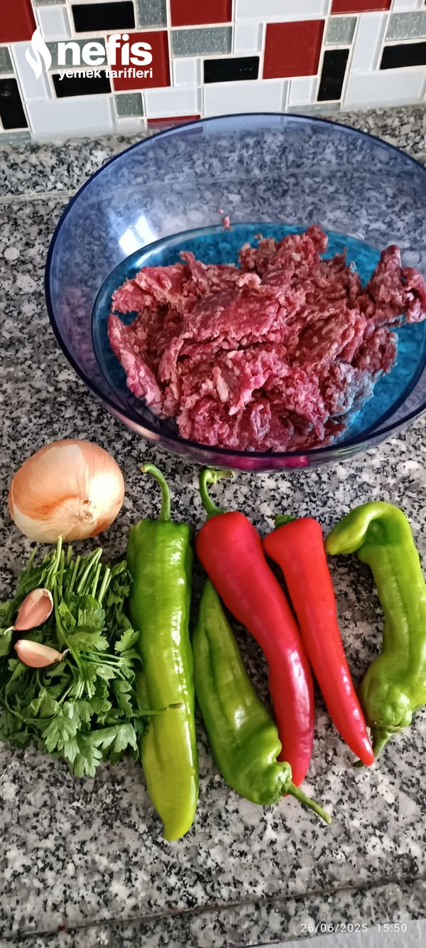 1. Soğan, sarımsak, maydanoz ve biberleri rondodan geçiriyoruz.