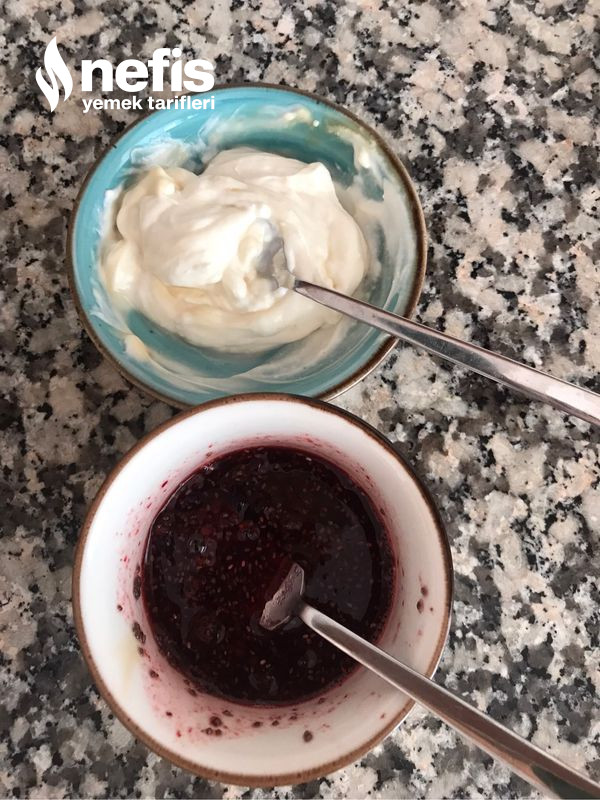 - Daha sonra alt tabanımızın üstüne labneli karışımı ekleyelim en üstte de meyveli karışımızı ekleyelim. İşte hazır afiyet olsun 🙂