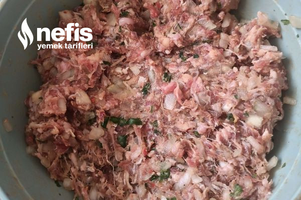 - İç harcı için kıymaya ince kıyılmış soğan ve öbür materyaller eklensin.