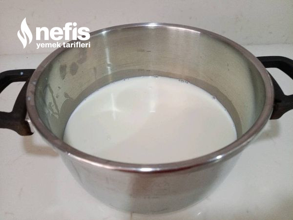 - Derin bir tencereye 1 litre sütü alın. Üzerine 2 paket hazır çikolatalı pudingi ekleyin.