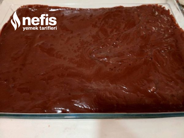 - Üzerine pişirdiğiniz pudingin yarısını döküp yayın.
