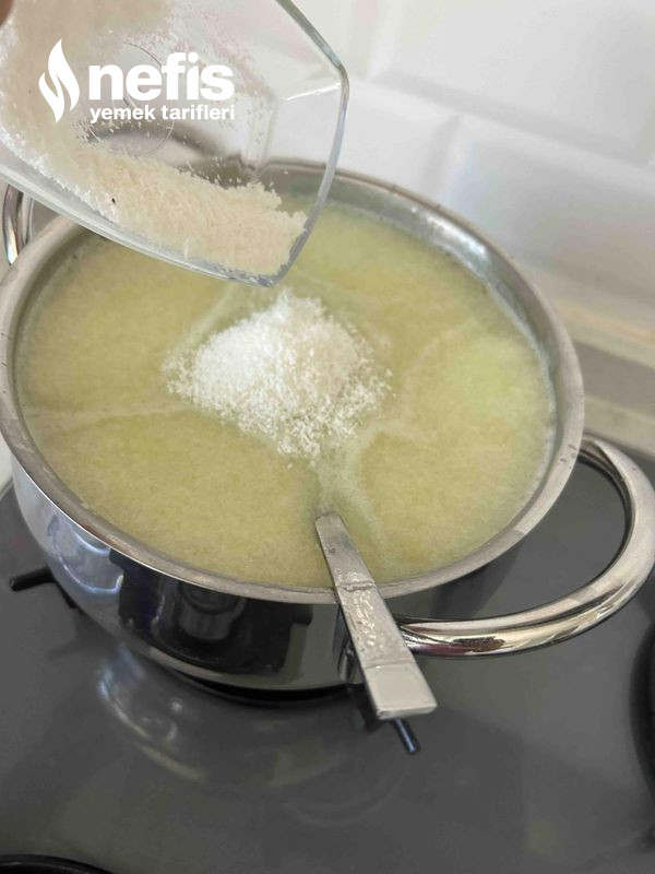 2. Daha sonra püre halindeki kavunu tencereye aktaralım orta ateşte daima karıştırarak pişirmeye başlayalım kıvam alıp kenarlardan pıt pıt atmaya başladığında hindistan cevizini ekleyelim, son kez karıştırıp ocaktan alalım.