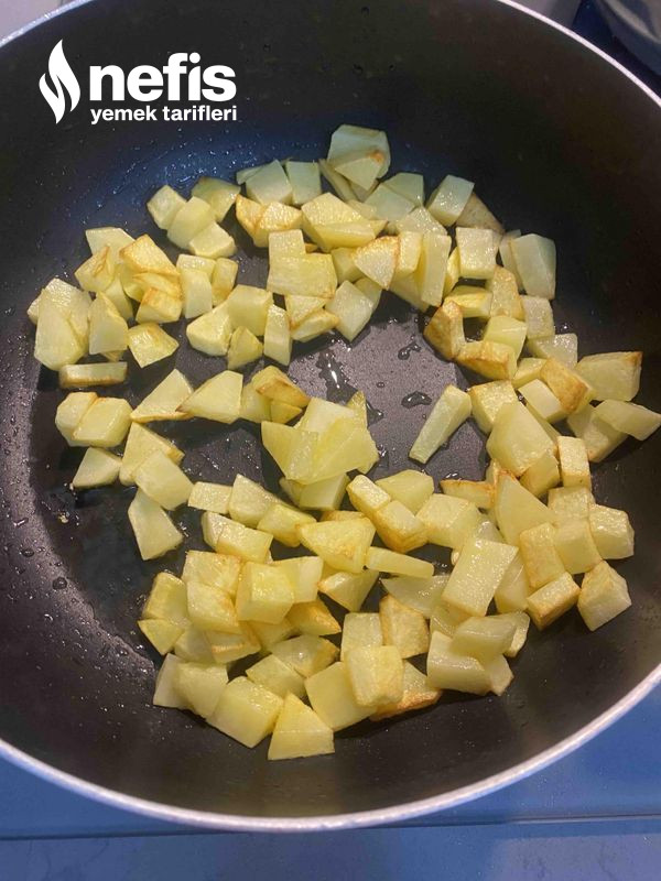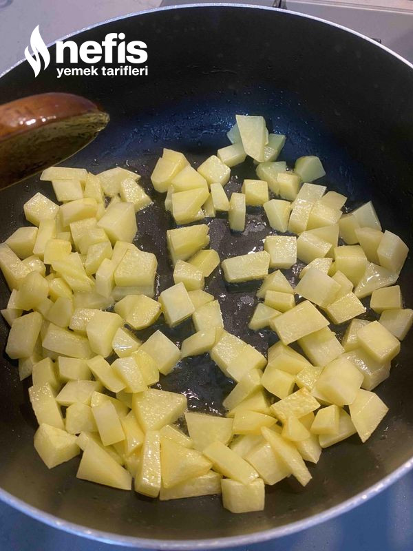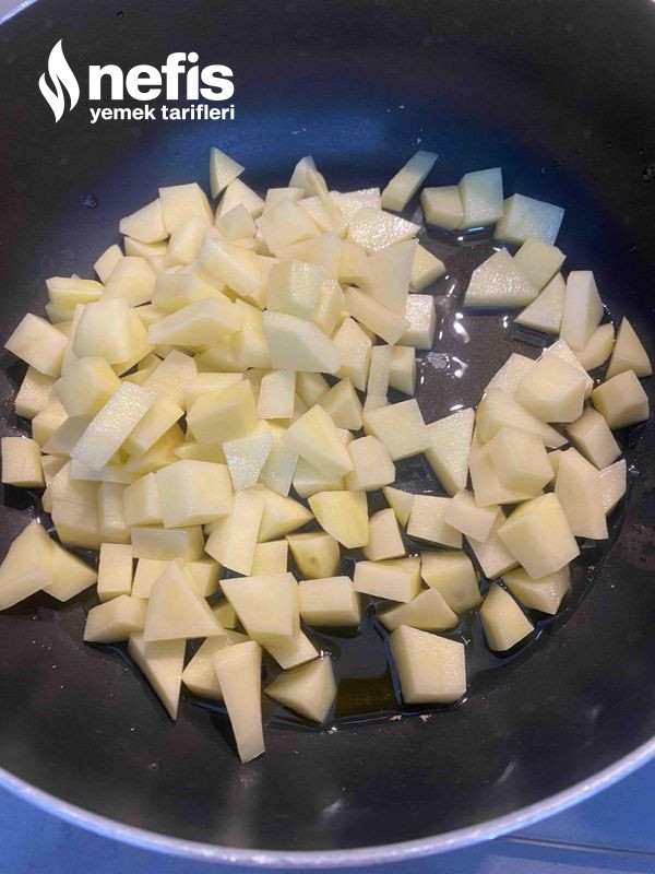 - Tencereye zeytinyağını alıp patatesleri biraz kızartıyoruz.