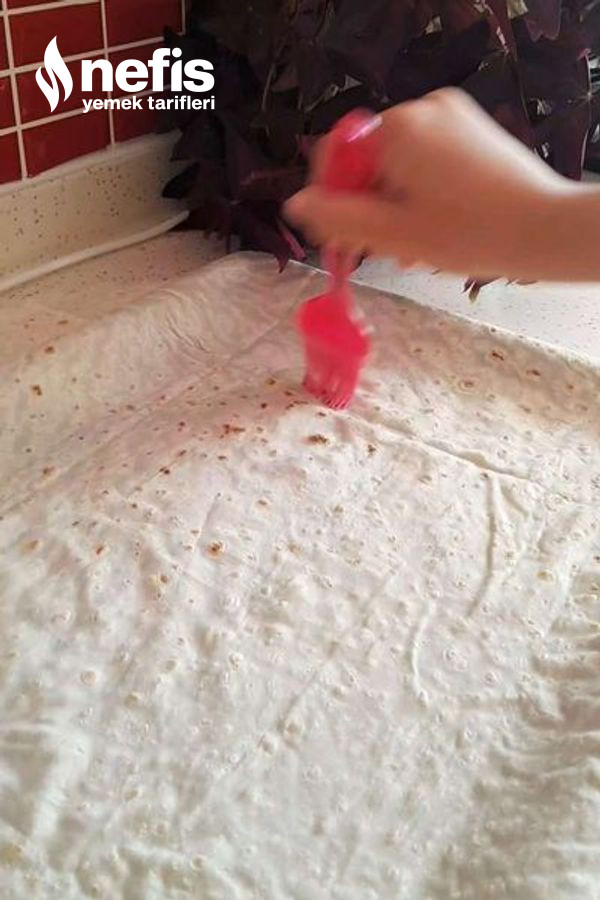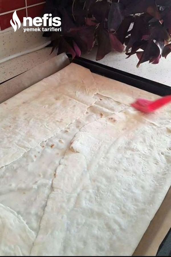 5. Tepsinin içine yufkamızı alalım sostan sürelim.