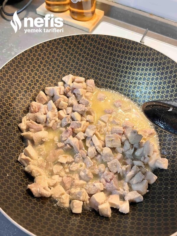 - Sonrasında derin bir tencere ya da tava alıp doğradığımız tavuk sarmalarımızı tavamızın içine koyalım ve sıvı yağ ekleyip pişirmeye başlayalım.