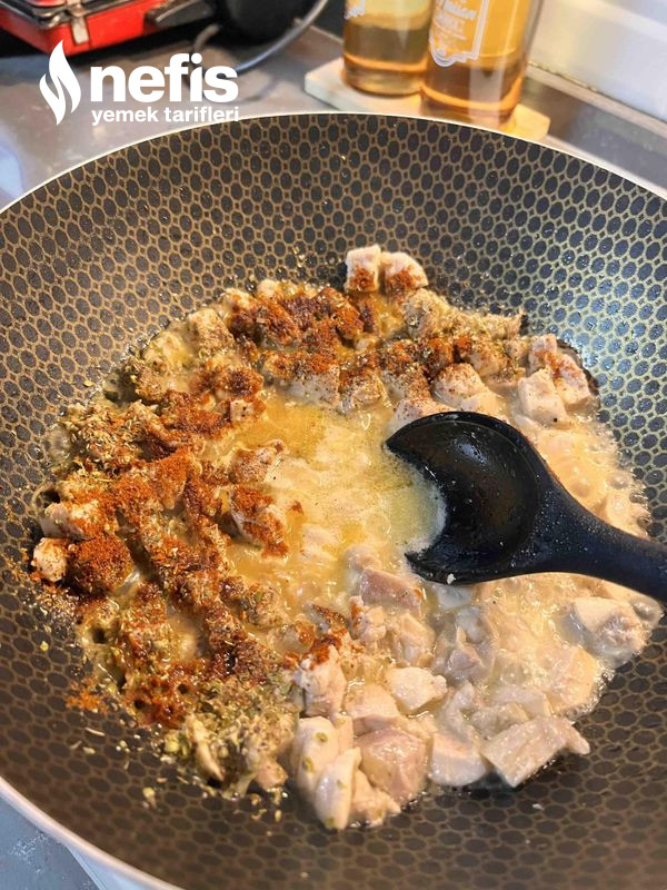 - Rengi biraz değişince tereyağını ve baharatlarını ekleyip pişirmeye devam edelim ve rengi pembeleşince tavamızın altını kapatalım.