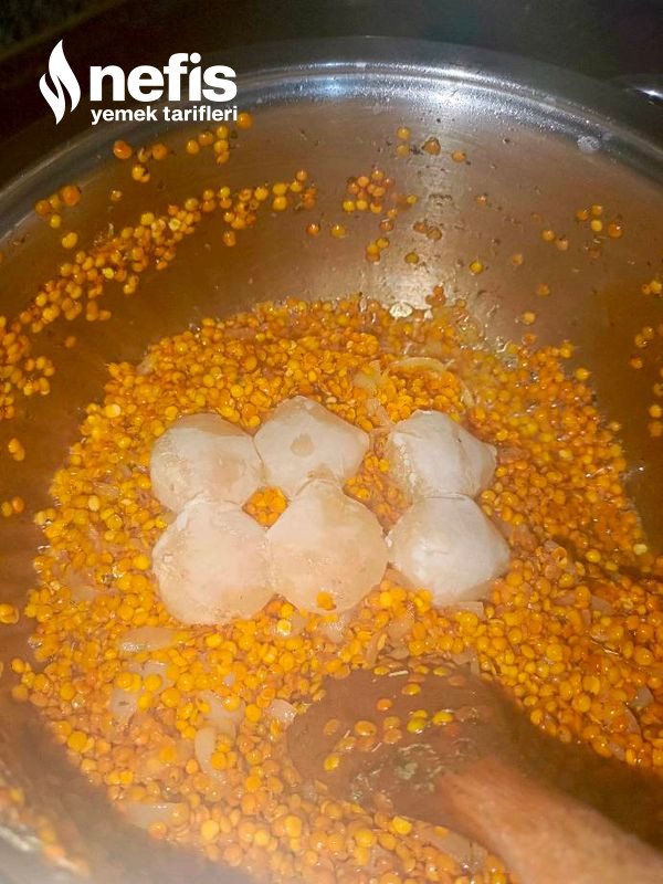 - Ardından et suyu,nane ve kimyon atılır ve su eklenip pişirmeye bırakılır.