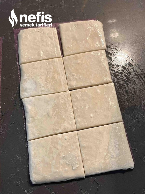 - Öncelikle milföylerimizin biraz çözülmesini bekleyelim ve fotoğraftaki formda her bir adetini 8 kesime kesip biraz daha yumuşak kıvama gelene kadar bekleyelim.