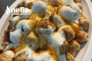 - Üstünü ve altını güzelce pişirdiğimiz mantılarımızı servis edeceğimiz tabağa alıp üzerine hazırladığımız yoğurdu dökelim.