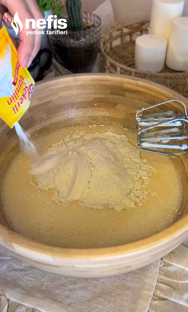 1. Yumurta ve şekeri bembeyaz olana kadar yeterlice çırpıyoruz. Üzerine süt ve sıvı yağı ekleyip tekrar çırpıyoruz. Akabinde un, kakao, şekerli vanilin, kabartma tozunu ekleyip homojenleşene kadar kısaca çırpıyoruz. Katı gereçleri ekledikten sonra çok çırparsanız kekiniz lastikleştirecektir.