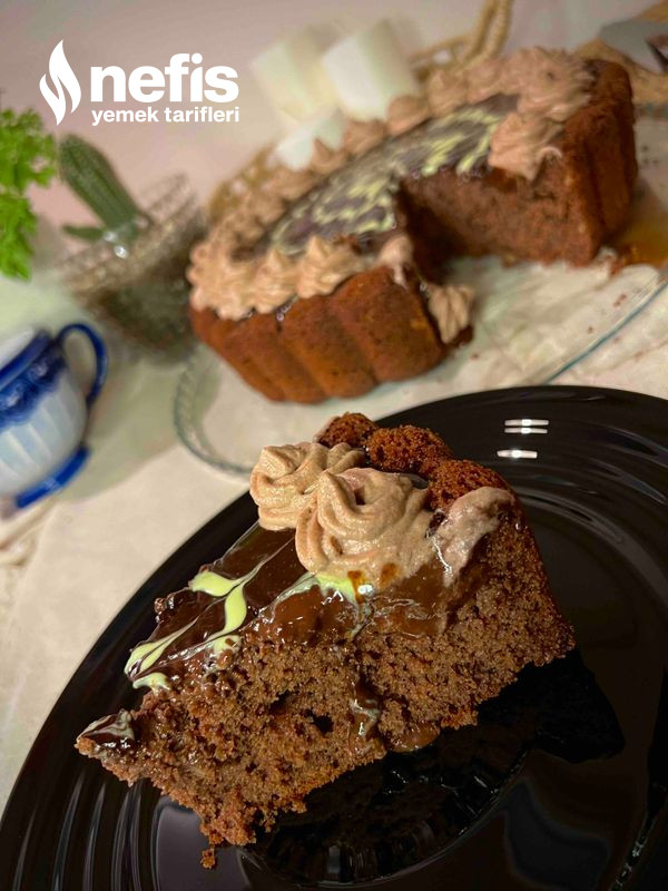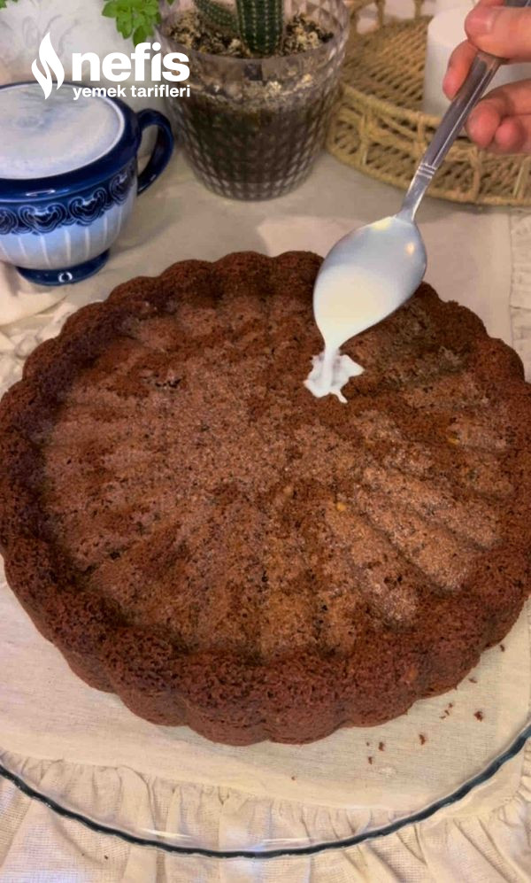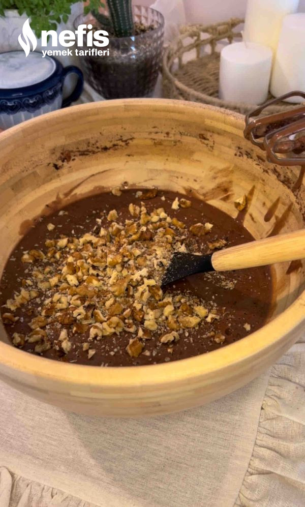 2. Hamura son olarak isteğe bağlı ceviz modüllerini da ekleyip kalıba alıyoruz. Evvelden ısıtılmış 180 derece fırında denetimli bir biçimde 35-40 dakika pişiyoruz. Her fırının ayarı farklı olduğu için denetimli pişirmekte yarar var. Kekimiz piştikten ve birinci sıcağı çıktıktan sonra 1 su bardağı süt ile keki ıslatıyoruz.